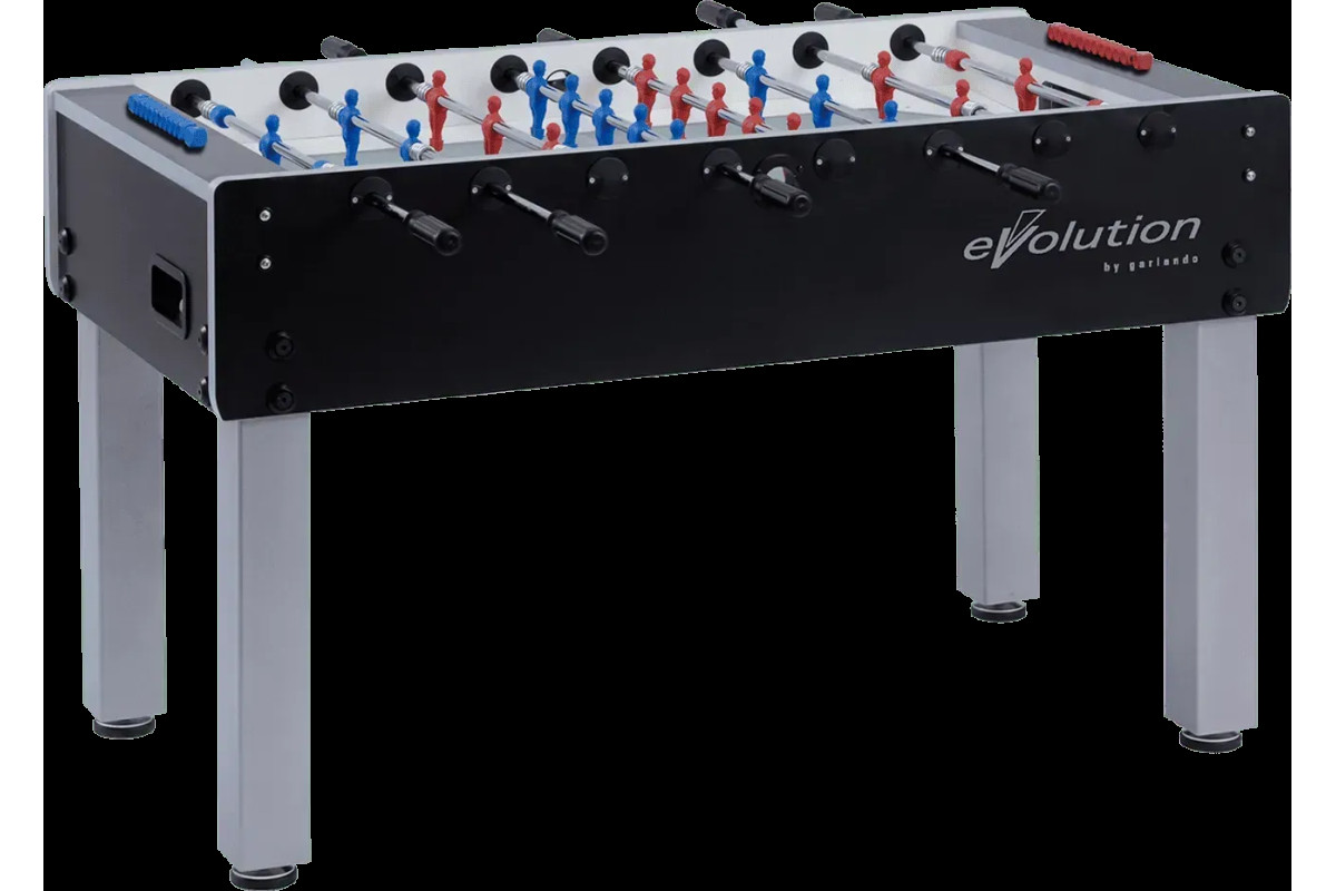Настільний футбол Garlando G-500 Evolution Telescopic (G500NERCVL) - професійна модель лінійки Evolution, спеціальної серії з трьох футбольних столів, яка також включає F-200 Evolution і G-2000 Evolution. Міцна конструкція стола має елегантне поєднання чорного та сріблястого кольорів, натхненного стилем хай-тек. Модель виготовлена безпосередньо в Італії з високоякісних матеріалів, що забезпечують довговічність і задоволення від гри, з урахуванням конкретних вимог, яким повинен відповідати футбольний стіл. Цей стіл характеризується надійністю та стійкістю, що робить його придатним для гри в будь-якому місці: від дому до офісу та бару. У 1999 році журналісти British Sport Magazine назвали G-500 кращим футбольним столом року в своїй ціновій категорії. Також G-500 був кастомізований сотнями відомих брендів, які вибрали цю модель завдяки простим лініям корпусу, особливо придатним для підкреслювання логотипів і корпоративних кольорів. Настільний футбол Garlando G-500 Evolution Telescopic (G500NERCVL) відповідає європейським стандартам безпеки EN 71-1, 71-2, 71-3 та 71-9.