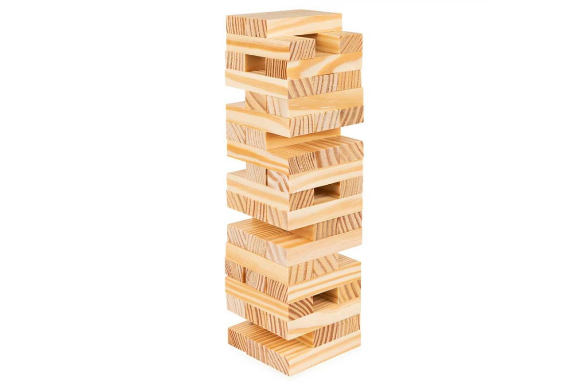 Початок гри – це побудова стартової вежі з 16 поверхів, де кожен рівень складається з трьох брусків, розташованих перпендикулярно до попереднього. Після цього учасники по черзі витягують один блок із будь-якого рівня, окрім верхнього, і переносять його нагору, завершуючи черговий поверх. З кожним ходом вежа стає вищою і менш стабільною, що додає азарту та емоцій. Програє той, після чийого ходу конструкція руйнується, тому кожен крок вимагає точності та розрахунку.