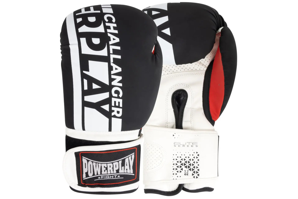 Рукавички боксерські PowerPlay 3086 Matt Challenger розмір 12 унцій, чорно-білі