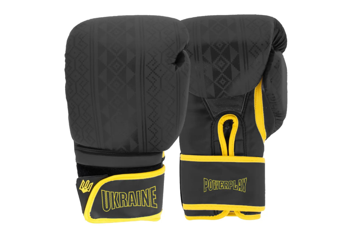 Рукавички боксерські PowerPlay 3021 Ukraine розмір 16 унцій, чорно-жовті