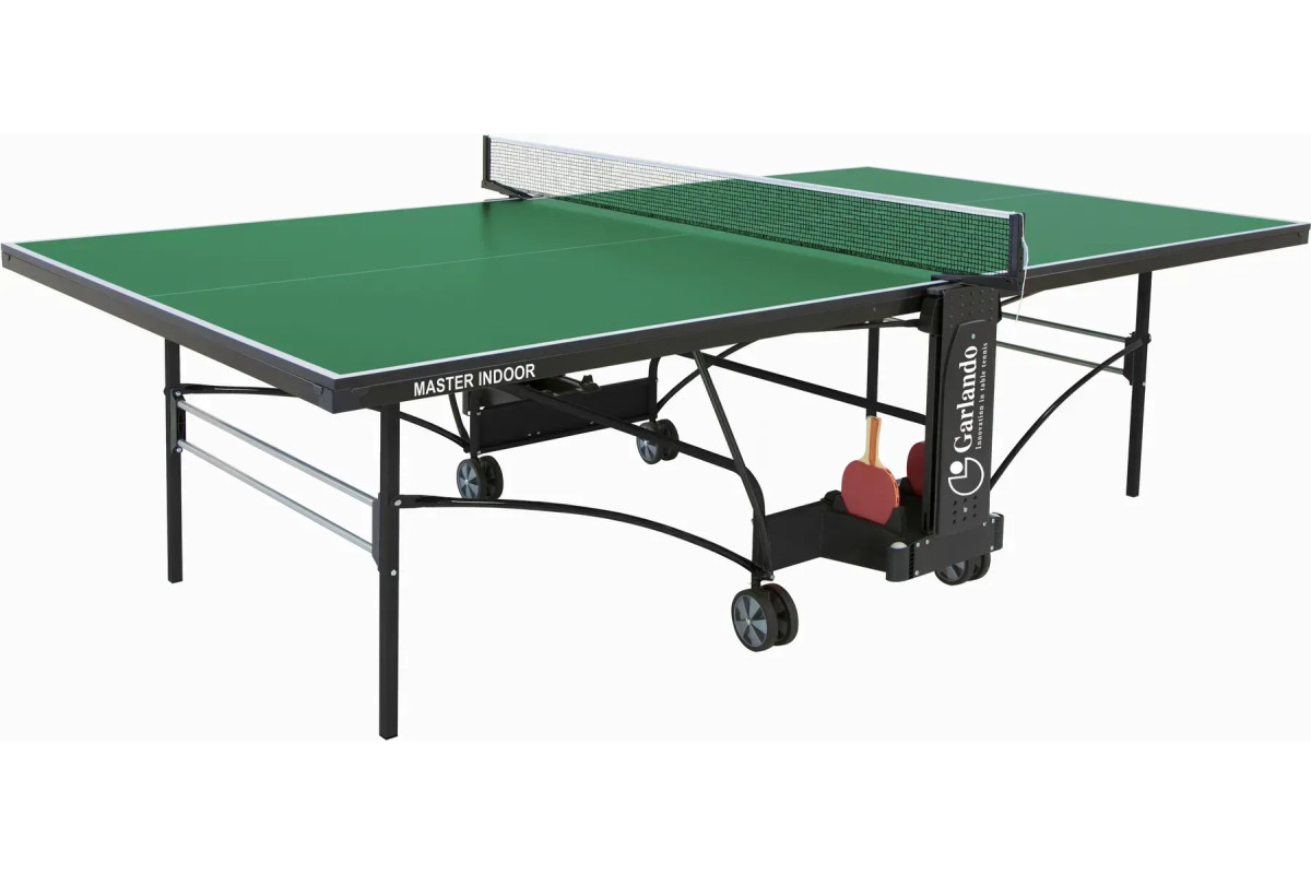 Тенісний стіл Garlando Master Indoor Blue (C-373I) призначений для гри в настільний теніс у закритих приміщеннях. Ігрова поверхня виконана з високоякісного ДСП товщиною 19 мм із меламіновим покриттям і металевою крайкою по периметру. Модель надзвичайно стійка, завдяки конструкції з квадратними ніжками з металевих трубок 25х25 мм і подвійним горизонтальним з’єднувальним планкам. Чотири здвоєні транспортувальні колеса діаметром 128 мм, два з яких обертаються на 360°, суттєво полегшують переміщення столу за потреби. Тенісний стіл оснащений сіткою та тримачем для ракеток і м'ячів. Компактний пристрій автоматичного закривання мінімізує обтяження після того, як настільний стіл складено, а система SMS (Smart Manual System) дозволяє розблокувати стільниці одним рухом максимально швидко та безпечно. Складана конструкція з автоматичною системою блокування забезпечує зручне зберігання столу в домашніх умовах. Піднявши одну з половинок стільниці, тенісний стіл можна використовувати як для одиночних тренувань, так і для гри людьми з обмеженими можливостями. Стільниця забезпечує хороший відскок м'яча, а покриття антивідблиску дозволяє грати довше, не напружуючи очей. Тенісний стіл Garlando Master Indoor 19 mm Green (C-372I) відповідає Європейським стандартам безпеки EN 14468-1/2.