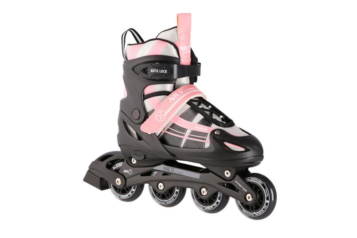 Роликові ковзани оснащені спеціальним алюмінієвим полозом і гальмом, що забезпечує безпеку під час катання. У свою чергу, колеса і підшипники класу ABEC7 забезпечують менший опір коченню, а значить, і швидше катання.
