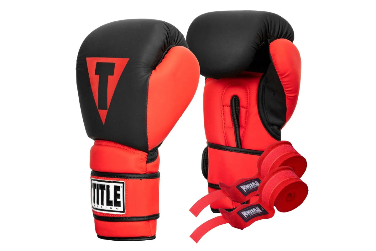 Рукавички боксерські з бинтами TITLE Boxing Guts and Glory розмір 14 унцій, чорно-червоні