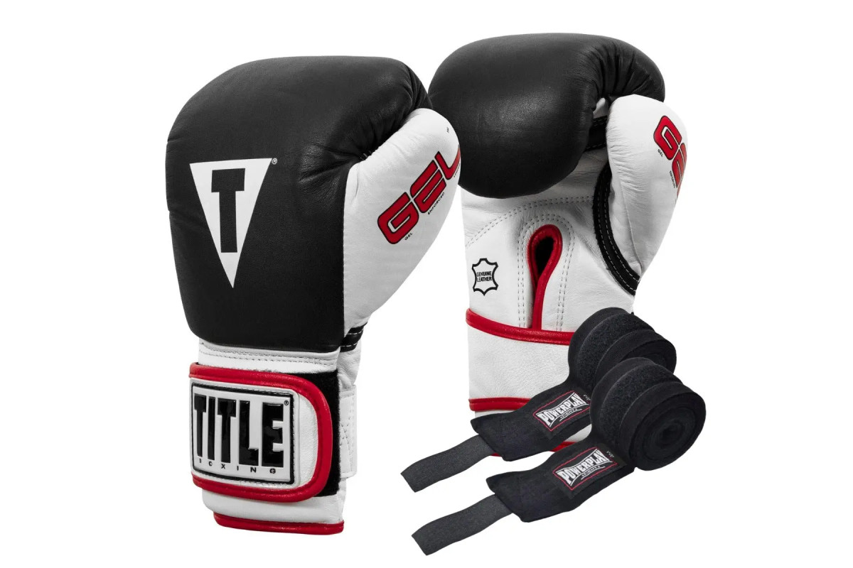 Рукавички боксерські шкіряні з бинтами TITLE Boxing Gel розмір 10 унцій, чорні