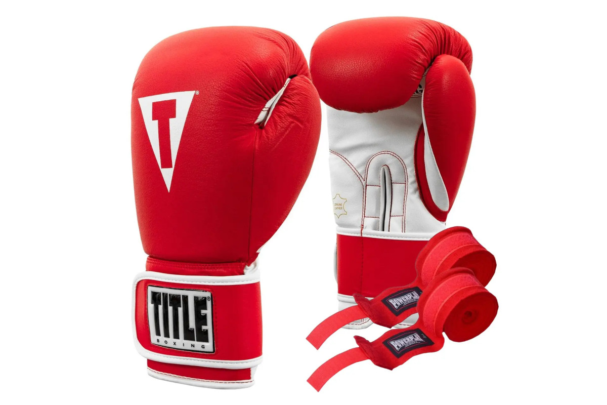 Рукавички боксерські шкіряні з бинтами TITLE Boxing Pro Style 3.0 розмір 16 унцій, червоно-білі