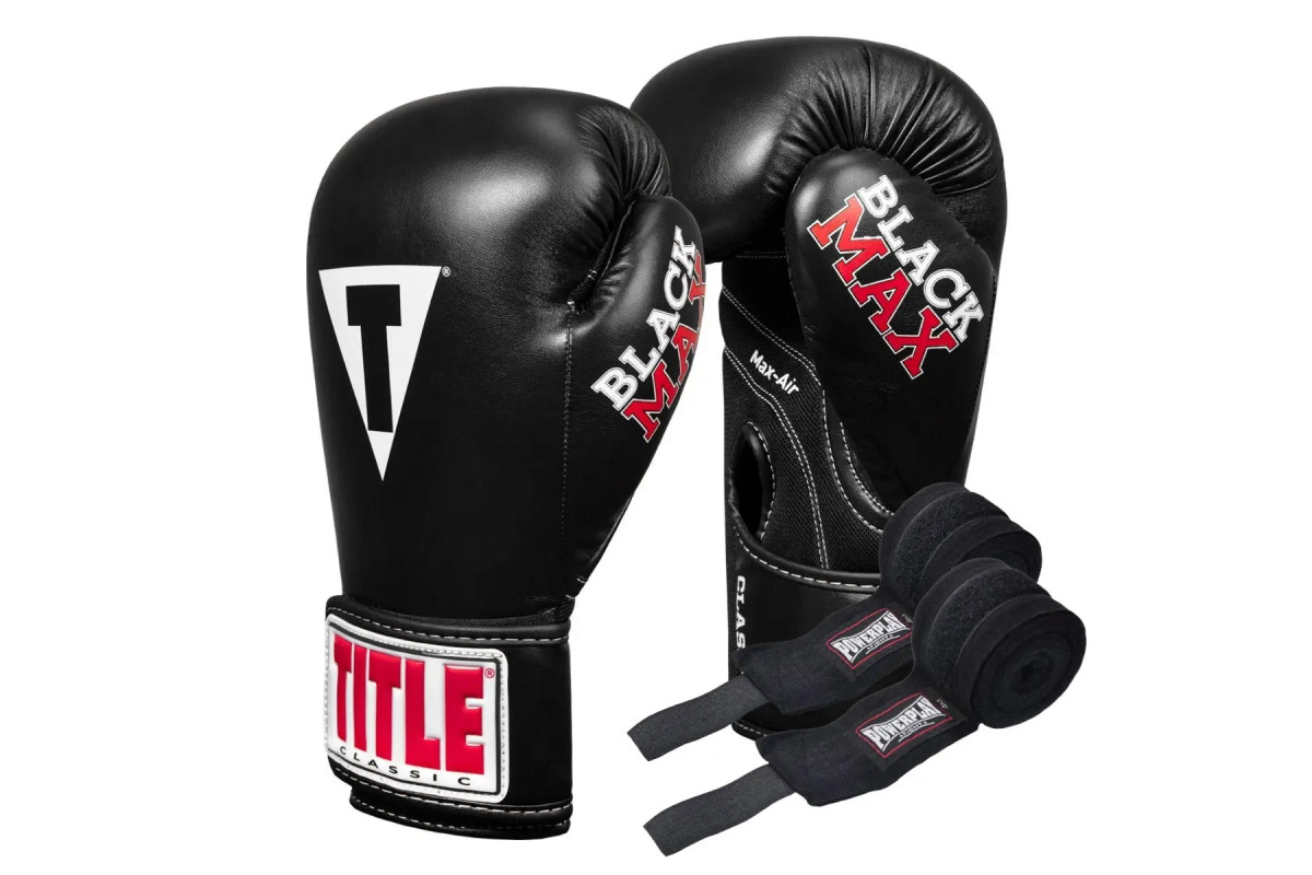 Рукавички боксерські з бинтами TITLE Classic Black Max розмір 16 унцій, чорні