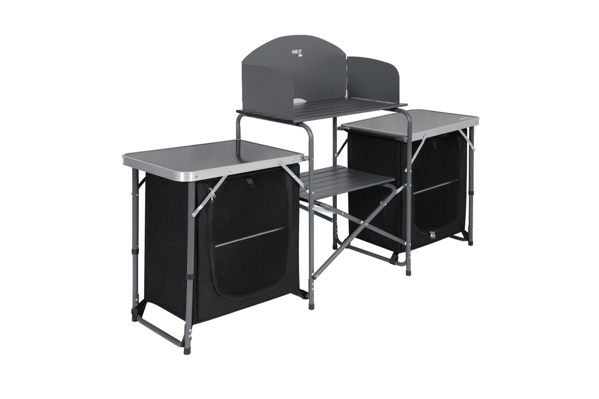 Шафа кемпінгова з вітрозахистом NILS CAMP NC3042 – це комплексне рішення для всіх, хто цінує порядок, зручність та ергономічність під час приготування їжі на свіжому повітрі. Створений з думкою про кемпінги, тривалі походи та сімейні поїздки на відпочинок, він пропонує повноцінну кухонну зону, яка дозволяє готувати їжу майже як вдома.