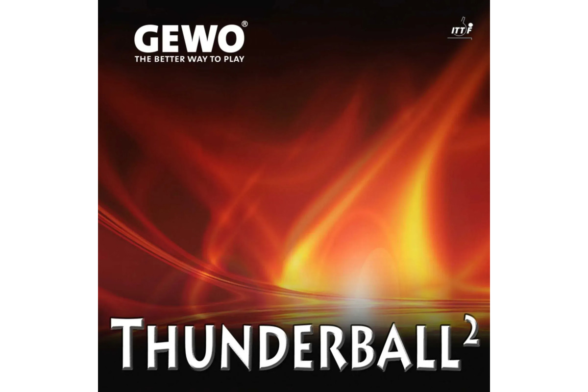 Гума Gewo Thunderball² – це результат розробки китайських експертів з матеріалів та команди GEWO. Результатом роботи є високоякісна гума, адаптована до європейського стилю гри, найважливіші характеристики якої – високий контроль та надзвичайно високий спін виражені однаково. Нещодавно розроблена поверхня забезпечує м'ячу найвищу обертальність для топ-спіну та контролю. Спеціальна губка забезпечує першокласне відчуття.