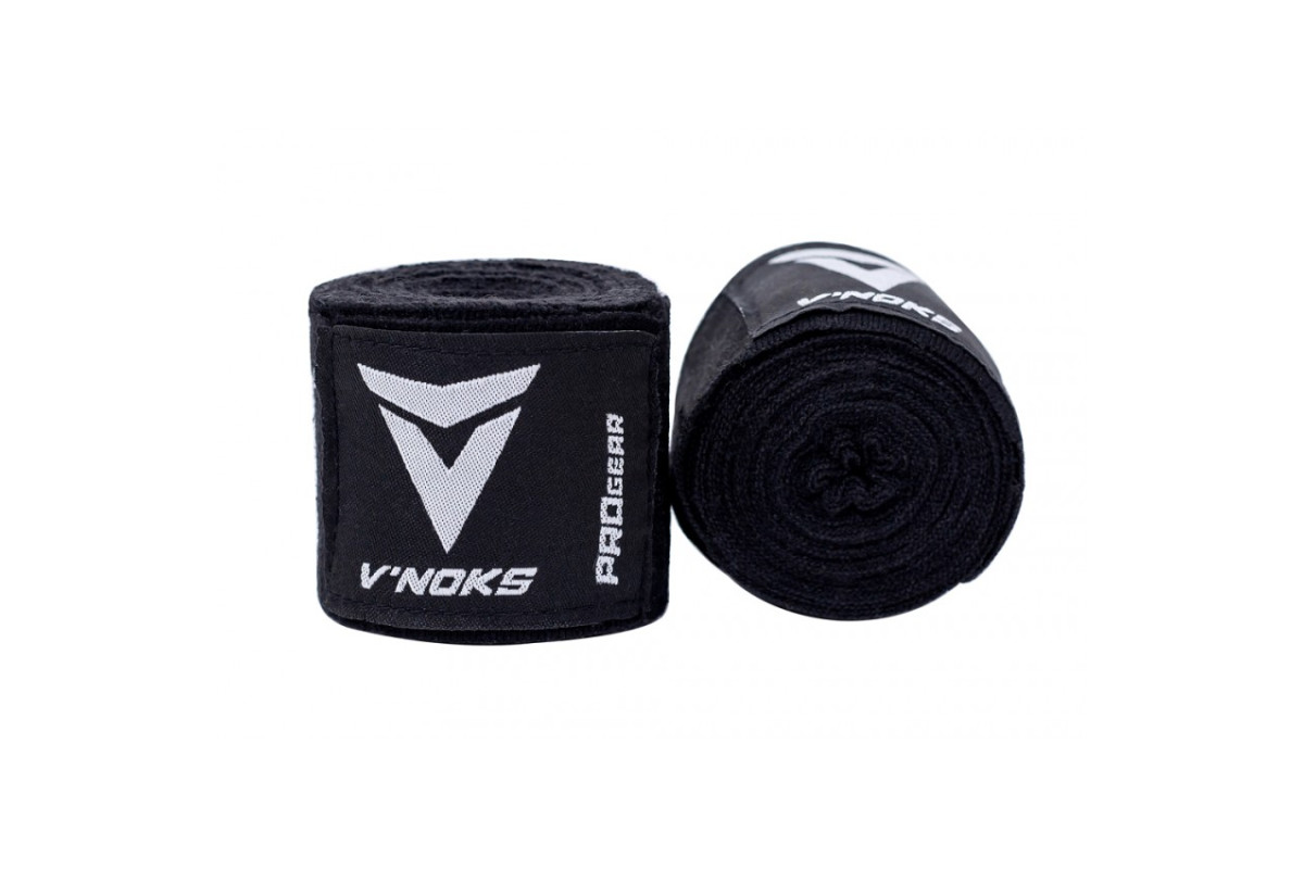 Бинти боксерські V'Noks (Вінокс) 3м використовуються для фіксації зап'ястя і захисту рук при заняттях різними видами бойових мистецтв: боксом, кікбоксингом, ММА, муай тай. Практичний варіант для будь-якого спортсмена від V'Noks (Вінокс): виконані в чорному кольорі, відрізняються помірною еластичністю (склад: 70% бавовна, 30% нейлону), прикрашені лейблами впізнаваного бренду.