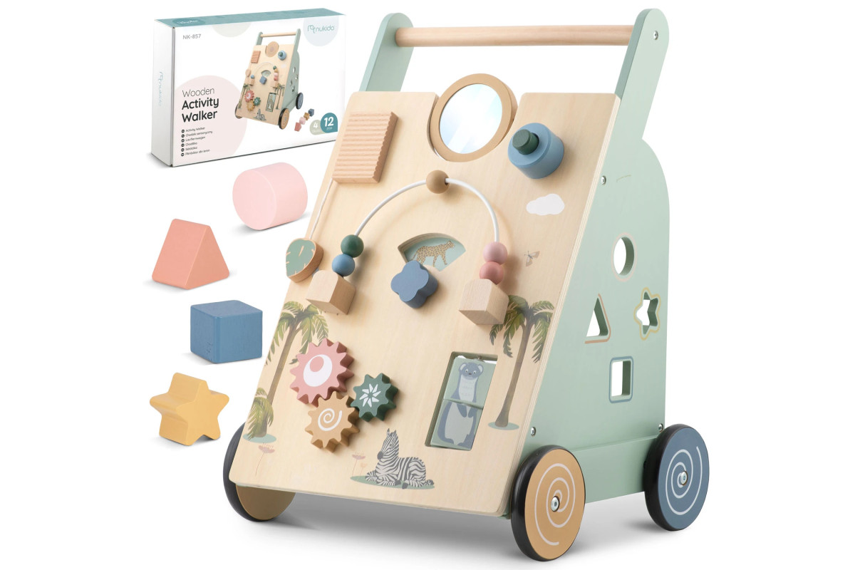 Дерев'яна каталка бренду Nukido. Натхненна принципами Монтессорі, ця іграшка стимулює моторику та сенсорну активність. Каталка заохочує дитину до гри, дослідження та стимулює органи чуття. Іграшка не потребує батарейок, не відтворює мелодії.