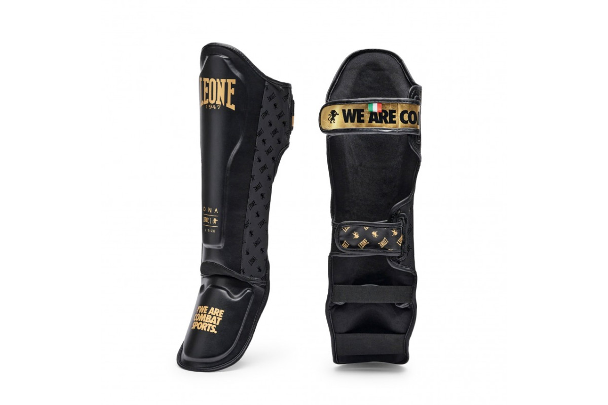 Захист гомілки Leone DNA Rex Leather - виготовлений із високоміцної PU-шкіри. Виконана у чорному кольорі з контрастними глянсовими деталями у чорному та золотистому кольорах. Завдяки анатомічній конструкції, захист зручно сідає та чудово захищає ноги спортсмена. При виготовленні накладок особливу увагу приділили передній частині ноги та підйому стопи: на них додаткові гелеві накладки гарантують відмінне поглинання ударів. Підклад виконаний з гіпоалергенної тканини, що абсорбує. Особливі вигини накладок дозволяють зберегти рухливість стопи, а регулювальні ремені-застібки, що забезпечують надійну фіксацію виробу. Еластичні гумки у зоні стопи забезпечать стабільність та комфорт під час тренувань