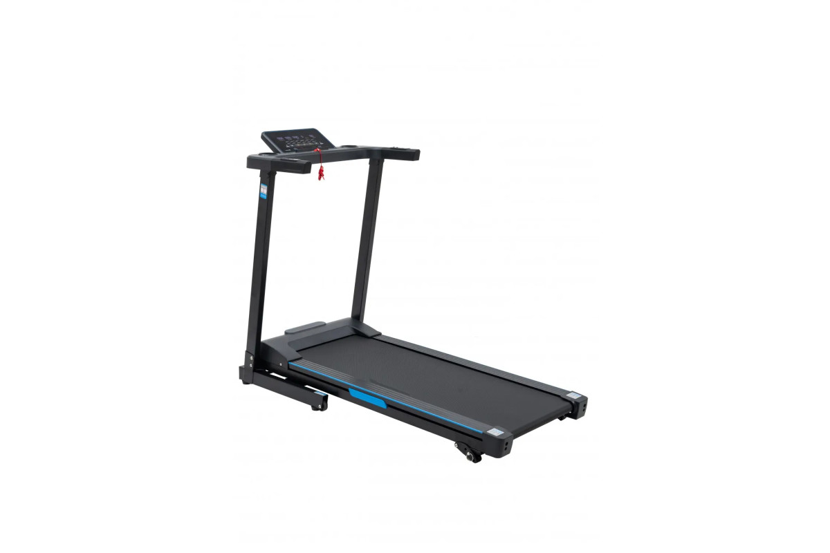 Бігова поверхня розміром 120 × 42 см забезпечує комфорт під час занять, а ключ аварійної зупинки гарантує безпеку. Передбачено 12 вбудованих програм, ручний режим управління та функції зворотного відліку дистанції, часу та калорій. Підставка для планшета або телефону дозволяє поєднувати тренування з переглядом контенту.