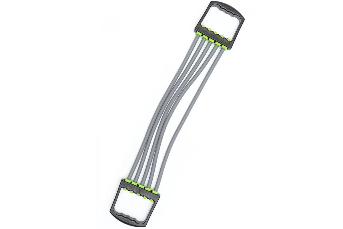 Еспандер грудний Ecofit MD1311 — компактний та функціональний тренажер для домашніх занять. Завдяки п’яти змінним еластичним трубкам він дозволяє регулювати рівень навантаження, поступово збільшуючи інтенсивність тренувань. Загальне максимальне навантаження становить 100 кг, що робить еспандер універсальним для різних рівнів підготовки.