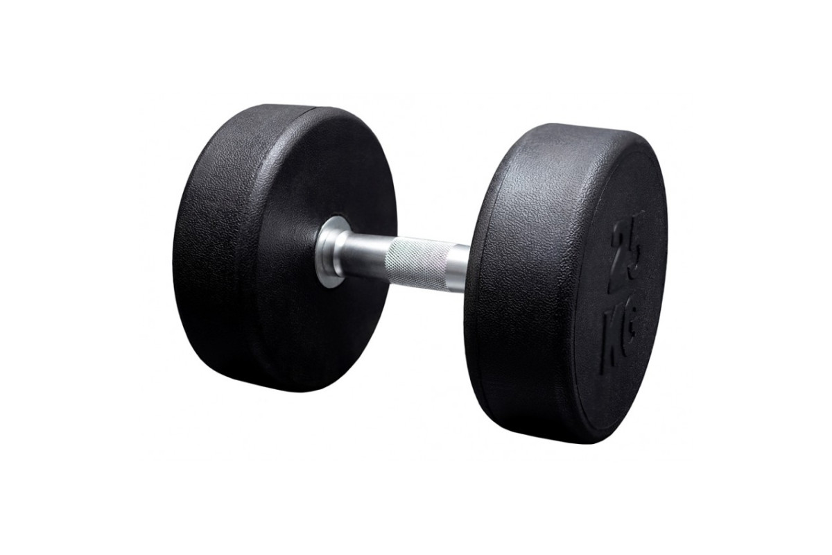 Виготовлена з високоякісної сталі та гуми. Ергономічна ручка має спеціальні насічки, за рахунок чого снаряд не прокручуватиметься в руці під час тренування. За рахунок дисків із щільної якісної гуми, тренування буде максимально безпечним та тихим.