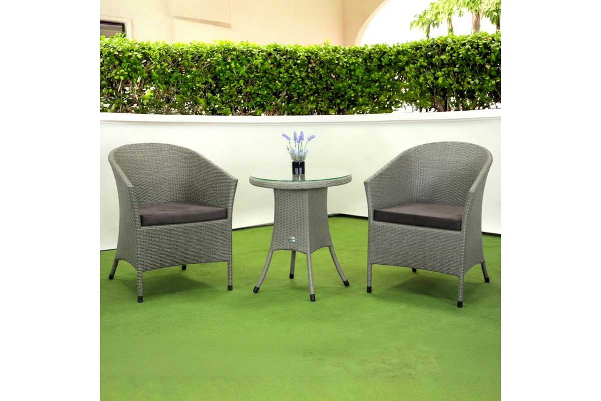 Комплект садових меблів Greengard Балеар 2— компактне та стильне рішення для облаштування затишної зони відпочинку на балконі, терасі чи в саду. Набір складається зі столу та двох крісел, виконаних із високоякісного штучного ротанга. Скляна стільниця з посиленням плівкою додає елегантності та практичності, а металевий каркас із полімерним покриттям забезпечує міцність і довговічність. Ергономічна форма крісел створює комфортні умови для відпочинку. Подушки не входять до вартості комплекту.