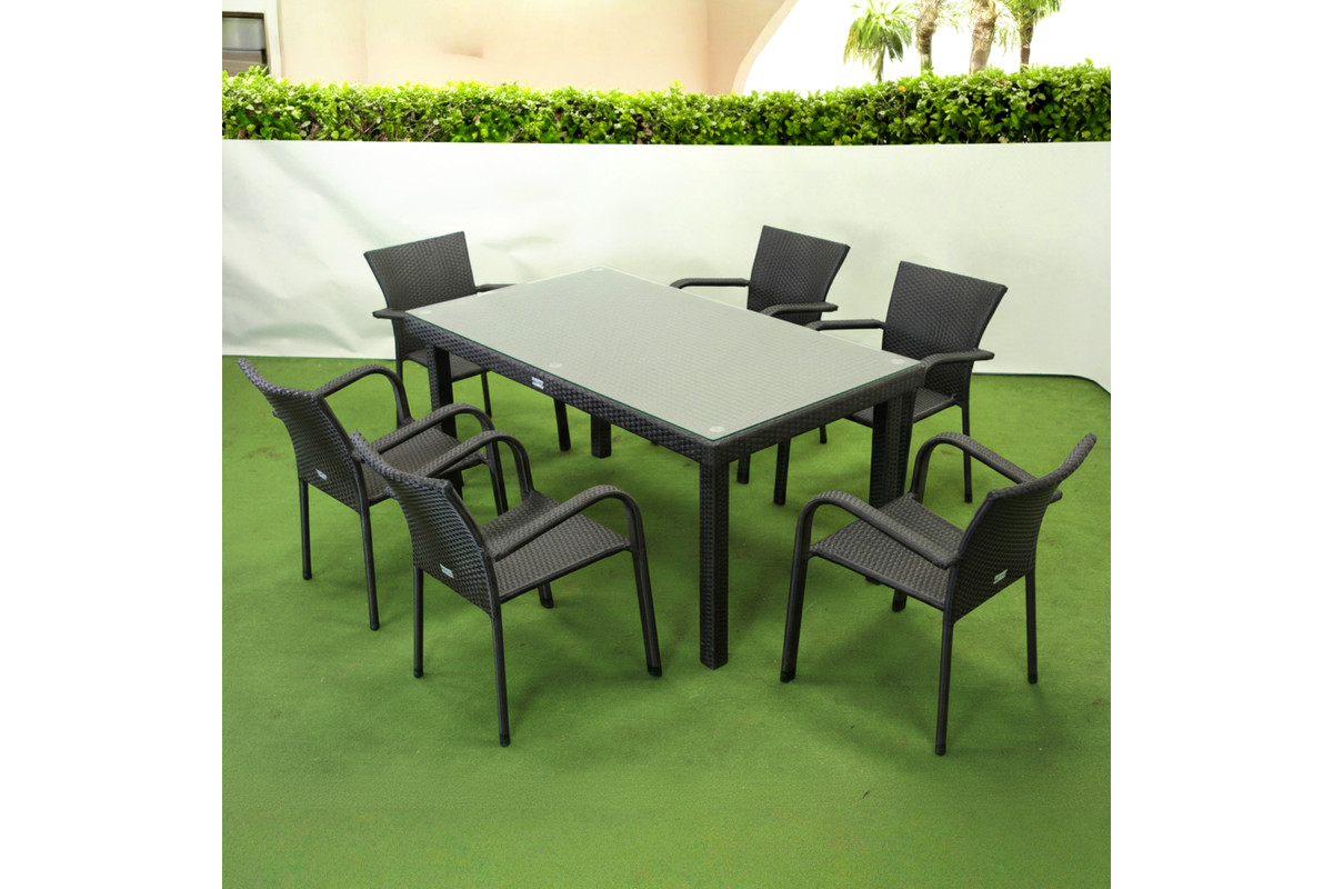 Комплект садових меблів Greengard Вермонт 160— компактне та стильне рішення для облаштування зони відпочинку. Сучасний дизайн поєднує комфорт і практичність, створюючи затишну атмосферу для сімейних обідів чи зустрічей на терасі, в альтанці або саду. Міцний металевий каркас із полімерним покриттям забезпечує надійність конструкції, а плетіння зі штучного ротанга вирізняється стійкістю до зовнішніх впливів та легкістю у догляді. Скляна стільниця додає елегантності та сучасного вигляду.