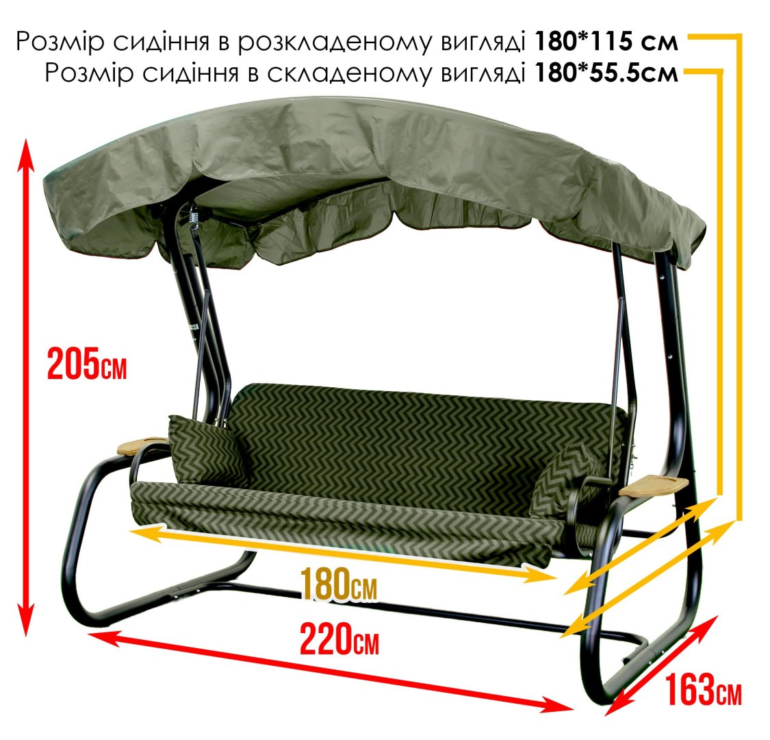 - Габарити в зібраному вигляді: 220 × 163 × 205 см