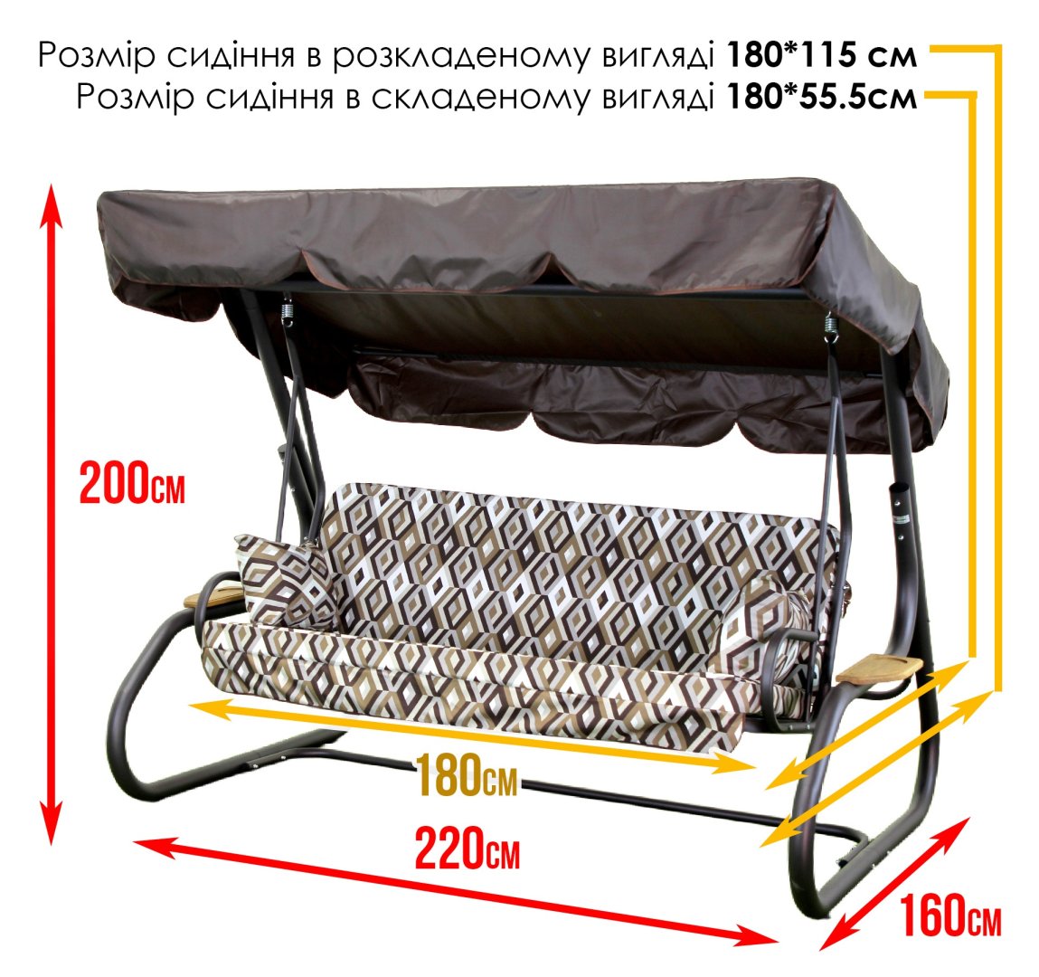 - Габарити в зібраному вигляді: 220 × 160 × 200 см