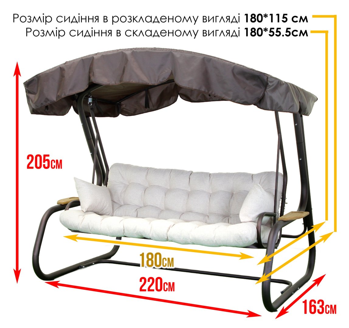 - Габарити в зібраному вигляді: 220 см × 163 см × 205 см