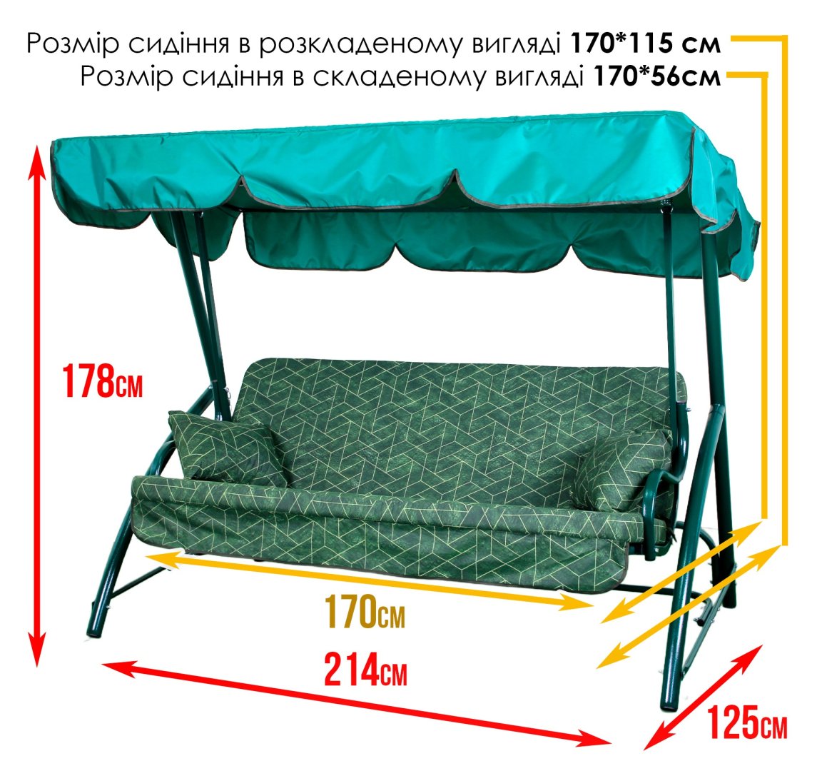 - Габарити в зібраному вигляді: 214 см × 125 см × 178 см