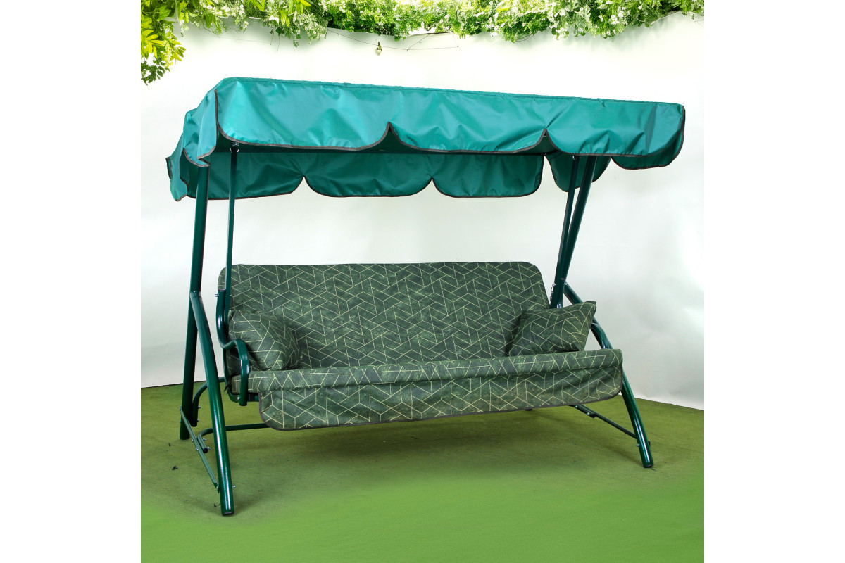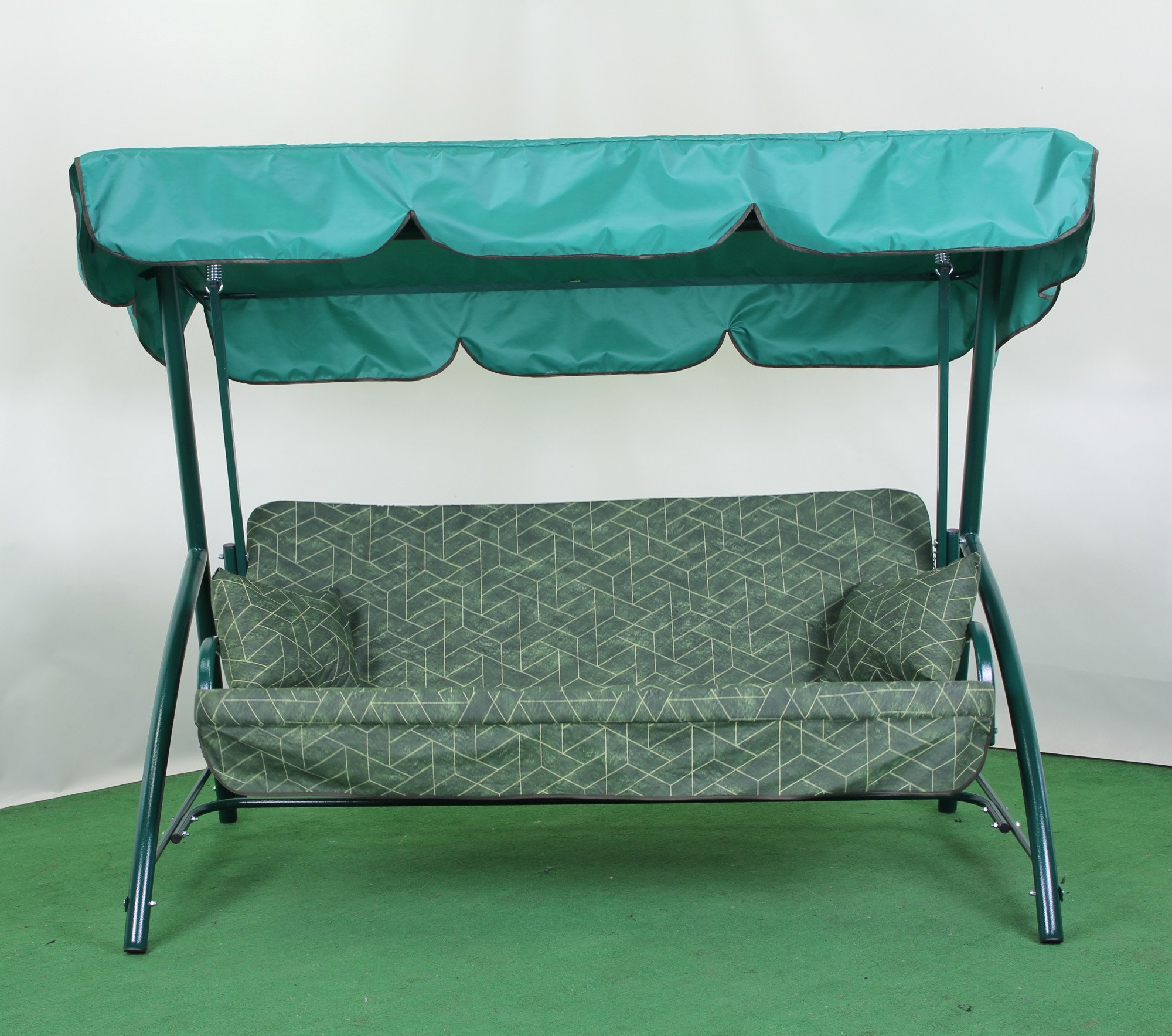 Спинка регулюється та може повністю розкладатися у літнє ліжко з можливістю фіксації від розгойдування. У стандартній комплектації є тент із водовідштовхувальної тканини, який захищає від сонця та легких опадів, створюючи комфортні умови для відпочинку. Простора конструкція забезпечує достатньо місця для трьох дорослих, а для дітей стає улюбленим місцем для веселощів і активних ігор.