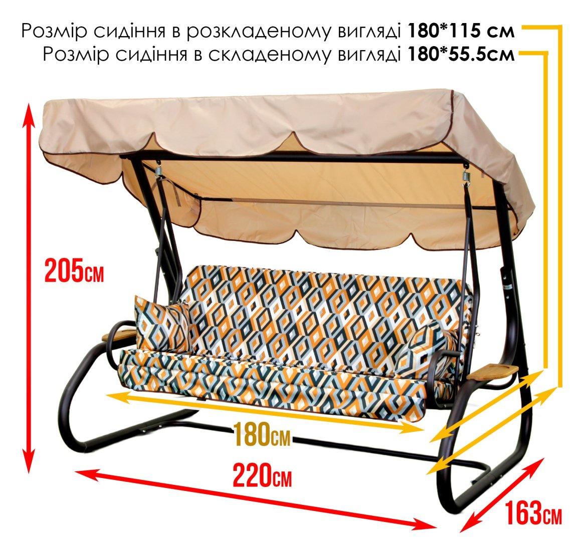 - Габарити в зібраному вигляді: 220 см × 160 см × 200 см