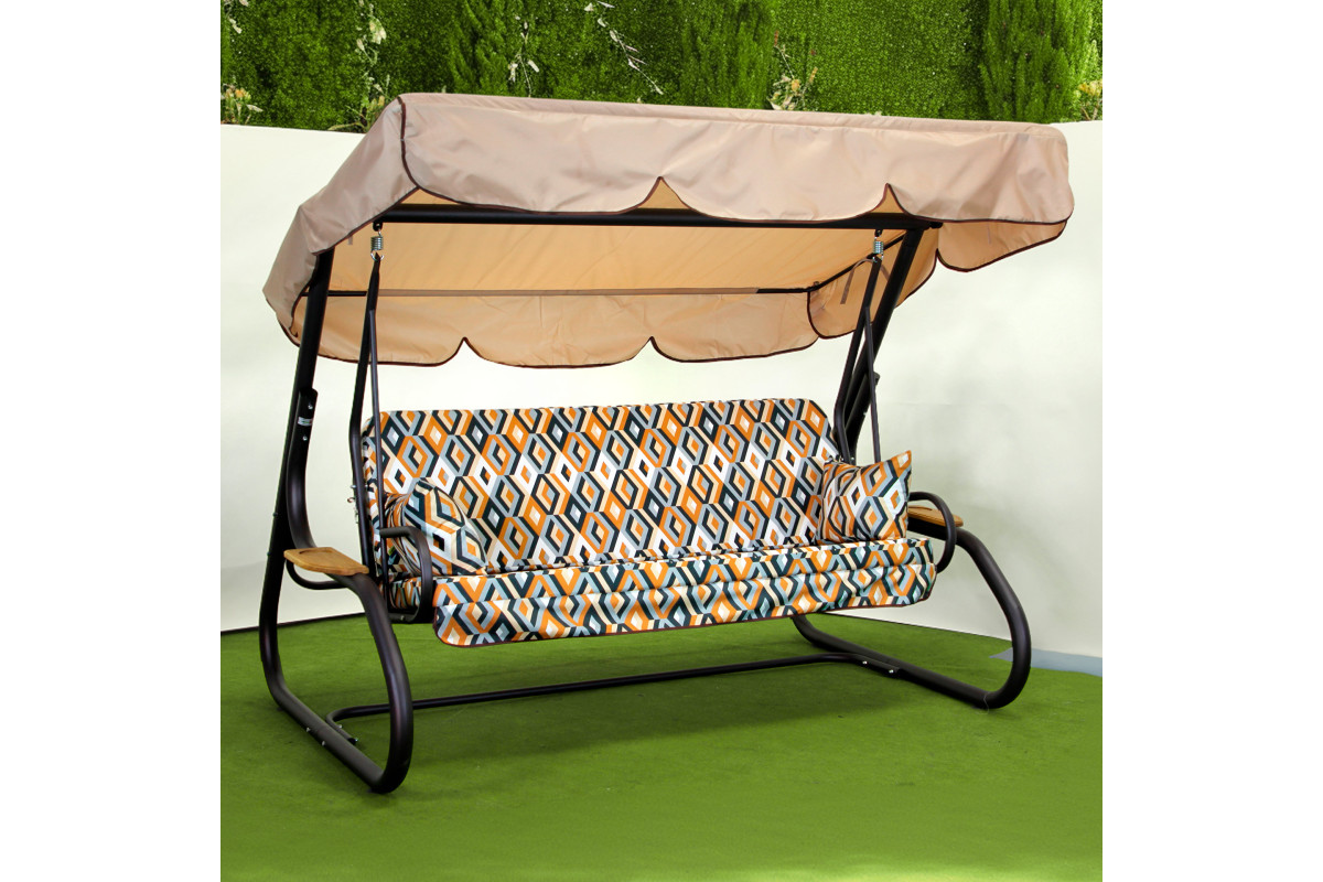 Садова гойдалка GreenGard Лате — сучасна та комфортна модель, яка поєднує стильний дизайн і практичність. Конструкція легко вміщує чотирьох дорослих. Сидіння трансформується у просторе літнє ліжко, створюючи затишне місце для відпочинку.