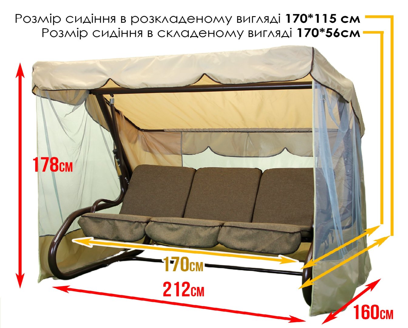 - Габарити в зібраному вигляді: 212 см × 160 см × 178 см
