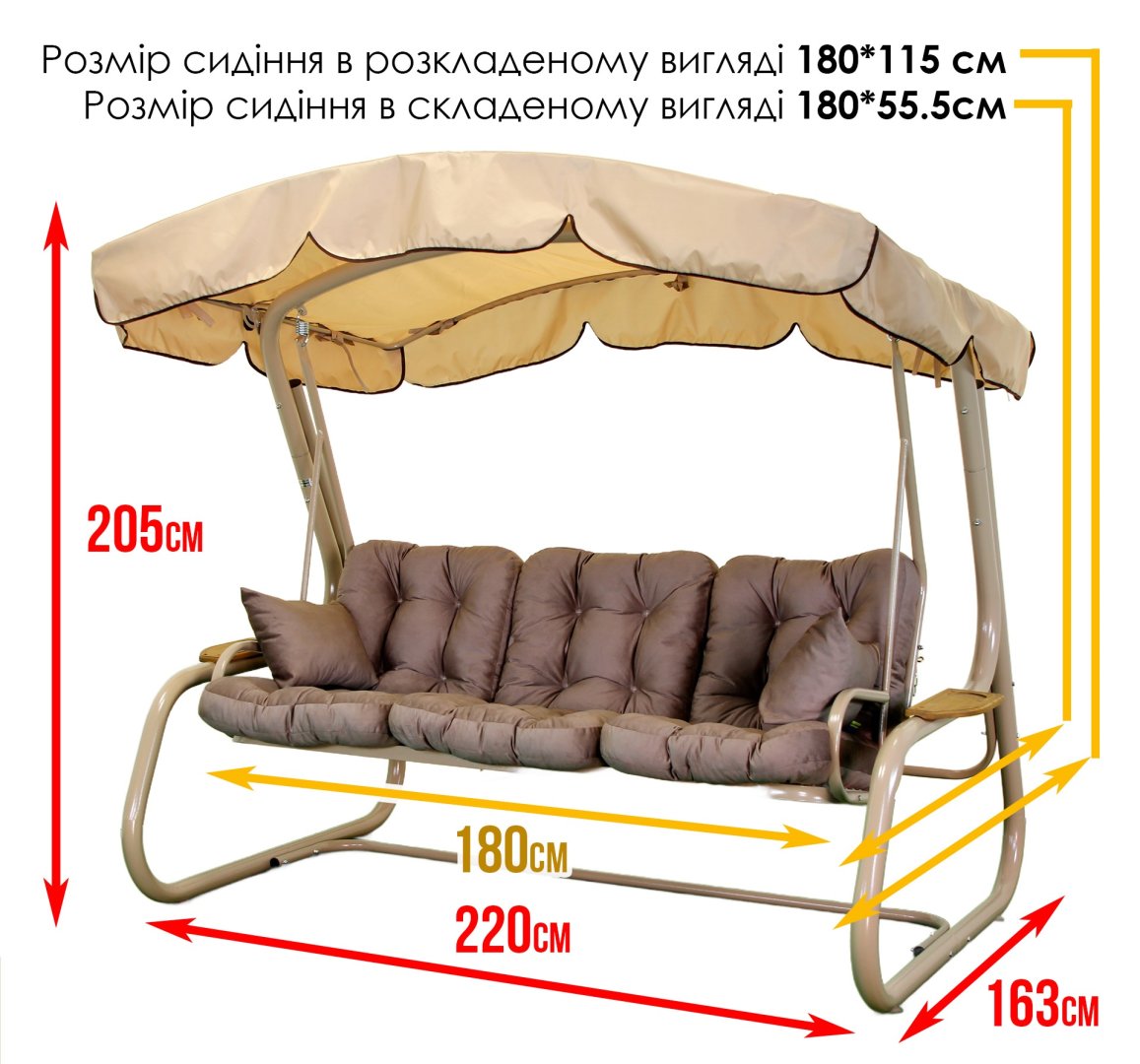 - Габарити в зібраному вигляді: 220 см × 163 см × 205 см