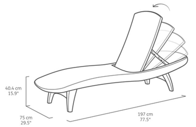 - Стійка до атмосферних впливів конструкція означає, що цей шезлонг не ржавіє, практично не вимагає обслуговування