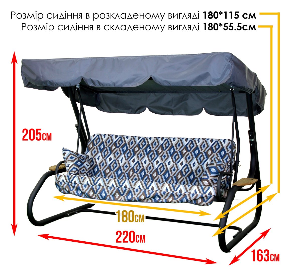 - Габарити в зібраному вигляді: 220 см × 160 см × 205 см