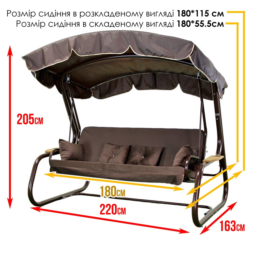 - Габарити в зібраному вигляді: 220 см × 163 см × 205 см