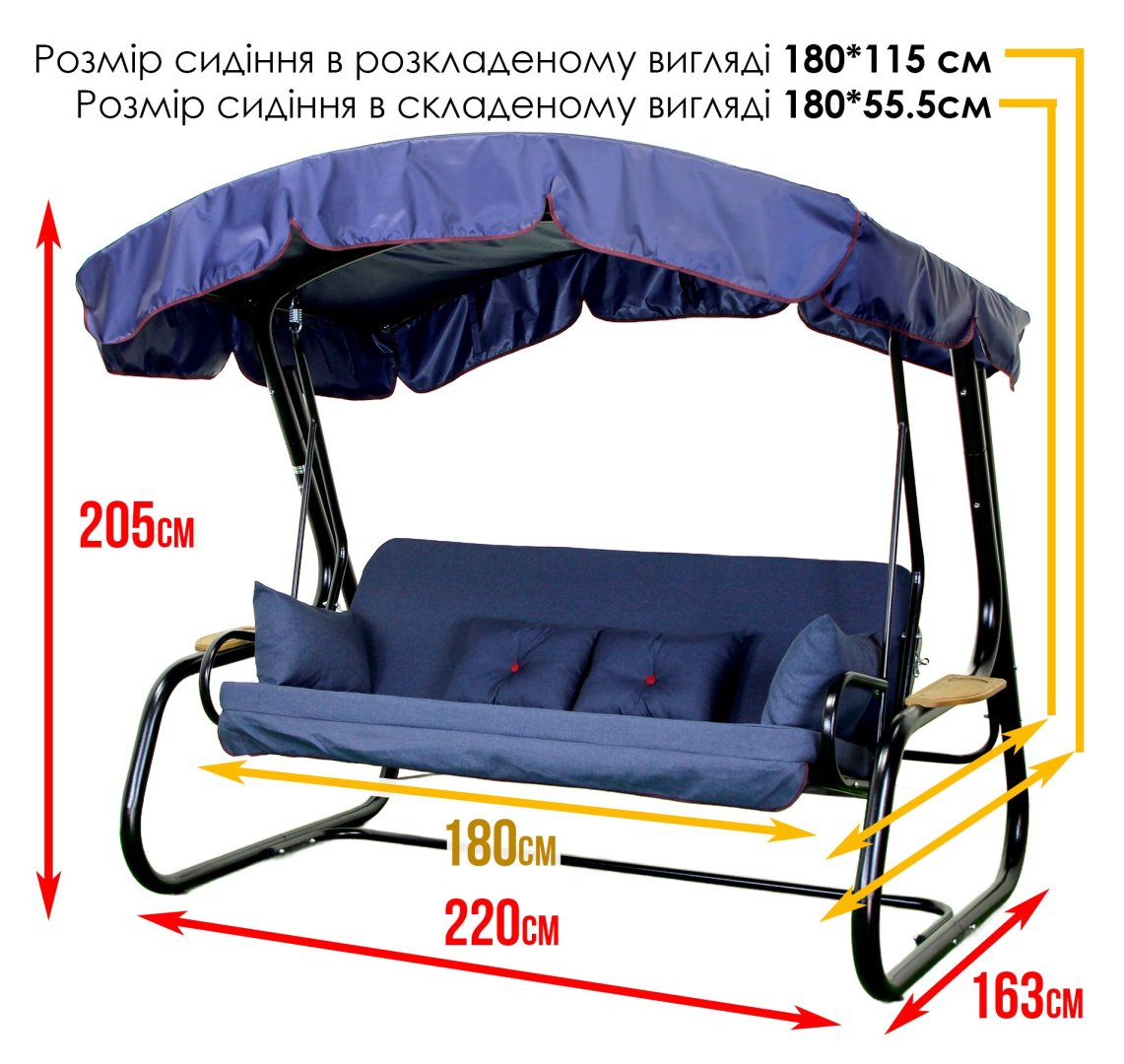 - Габарити в зібраному вигляді: 220 см × 163 см × 205 см