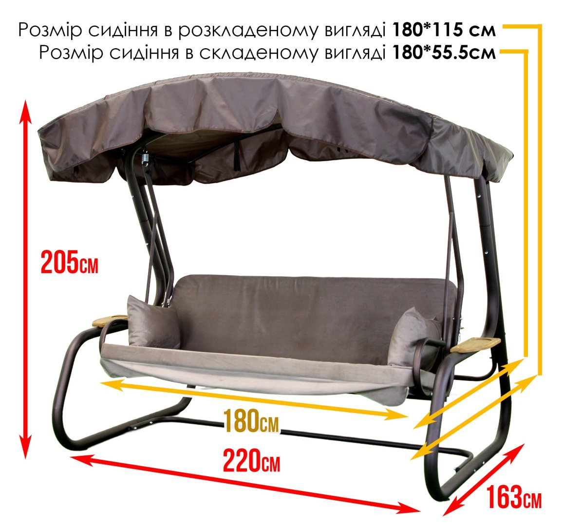 - Габарити в зібраному вигляді: 220 см × 163 см × 205 см