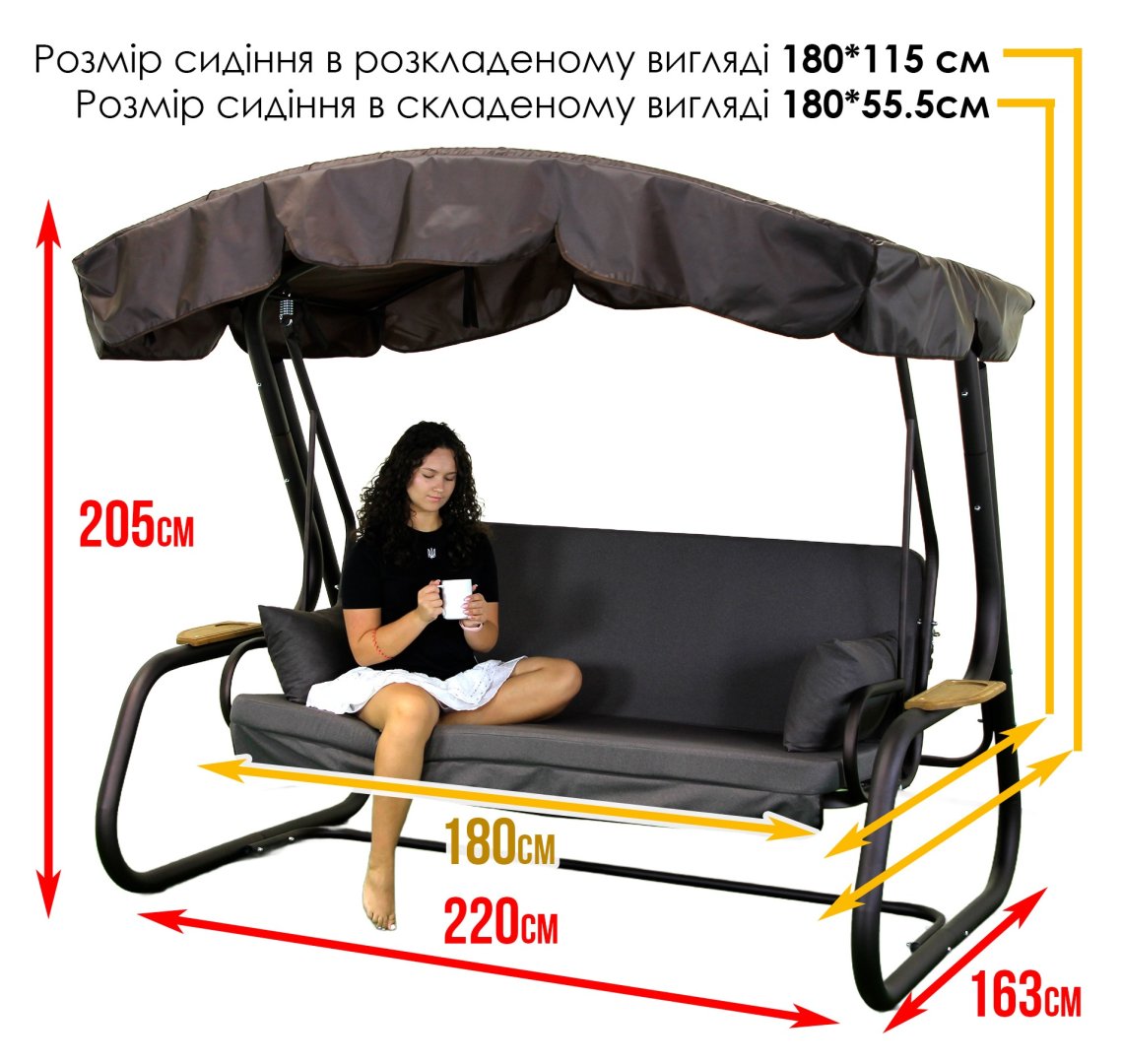 - Габарити в зібраному вигляді: 220 см × 163 см × 205 см
