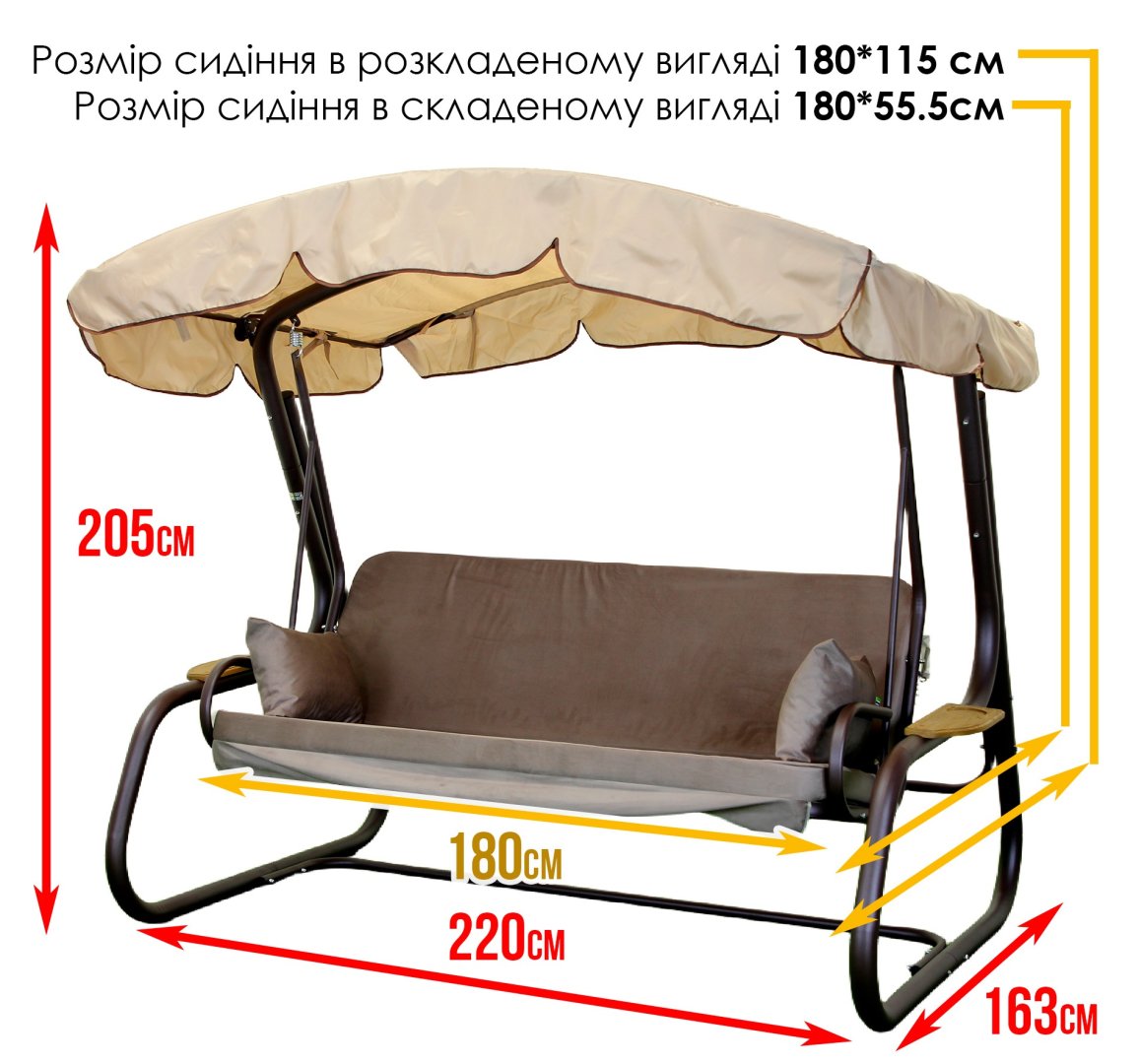 - Габарити в зібраному вигляді: 220 см × 163 см × 205 см