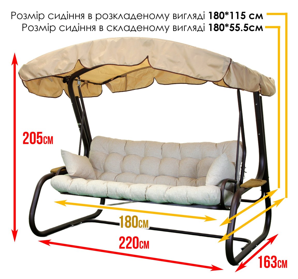 - Габарити в зібраному вигляді: 220 см × 163 см × 205 см