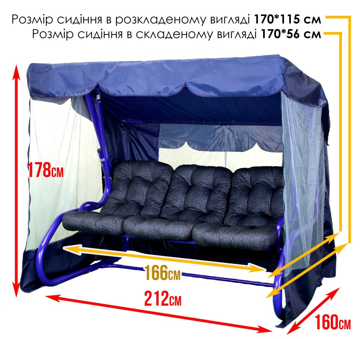 - Габарити в зібраному вигляді: 212 см × 160 см × 178 см