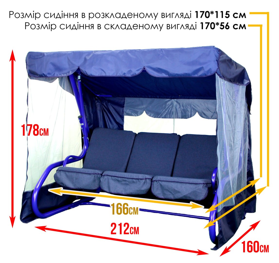 - Габарити в зібраному вигляді: 212 см × 160 см × 178 см