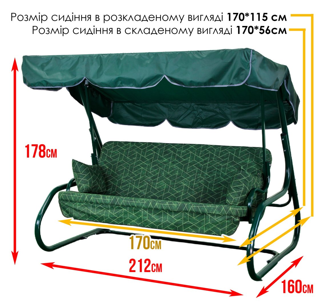 - Габарити в зібраному вигляді: 212 см × 160 см × 178 см