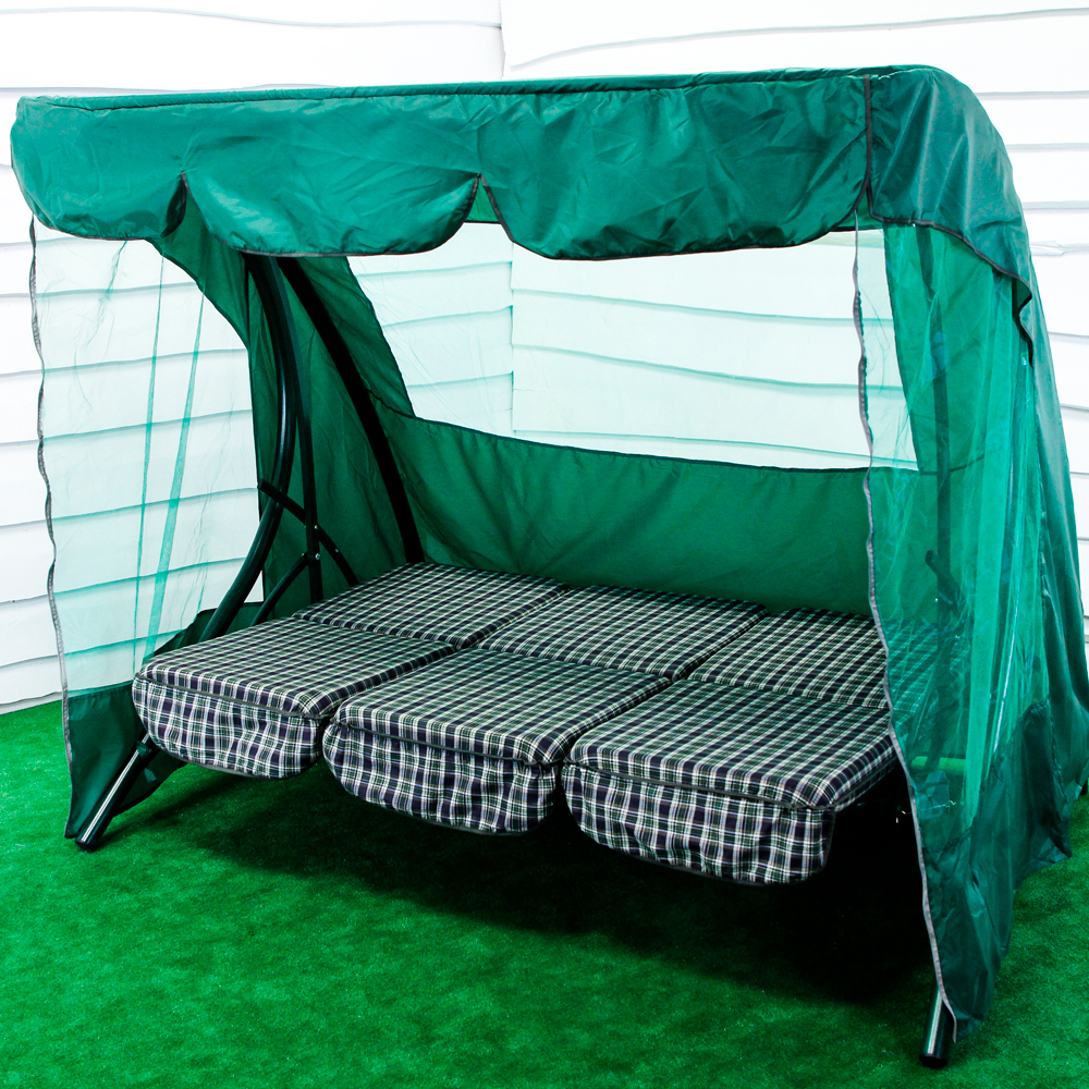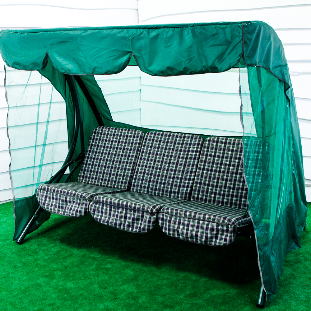 У комплект входить москітна сітка, яка повністю закриває каркас і забезпечує захист від комах. Тент із водовідштовхувальної тканини захищає від сонячних променів. М’яка частина складається з трьох подушок, що покривають сидіння та спинку; дві частини подушки з’єднані між собою. Чохли знімні, виготовлені з бязі GOLD, наповнення — поролон товщиною 8 см. Модель доступна у трьох варіантах забарвлення.