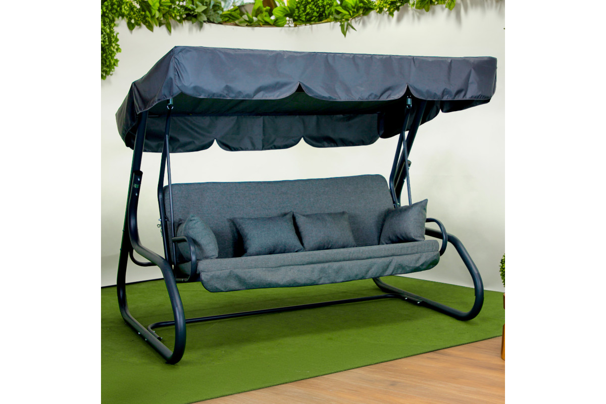 Садова гойдалка GreenGard Тенеріфе Solo поєднує сучасний дизайн, комфорт і надійність, створюючи зручний простір для відпочинку на свіжому повітрі. Завдяки продуманим габаритам конструкція легко вміщує до чотирьох дорослих та витримує навантаження до 450 кг, що робить її оптимальним рішенням для сімейних посиденьок або відпочинку в компанії.