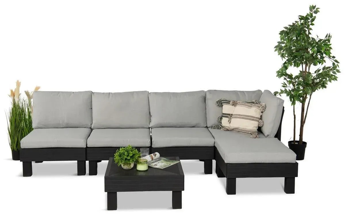 Весь комплект легко чистити; його можна мити водою з невеликою кількістю миючого засобу, а чохли для подушок можна зняти та прати в делікатному режимі. 5-місний модульний комплект меблів Elements не потребує спеціального догляду, а догляд за ним швидкий та простий.