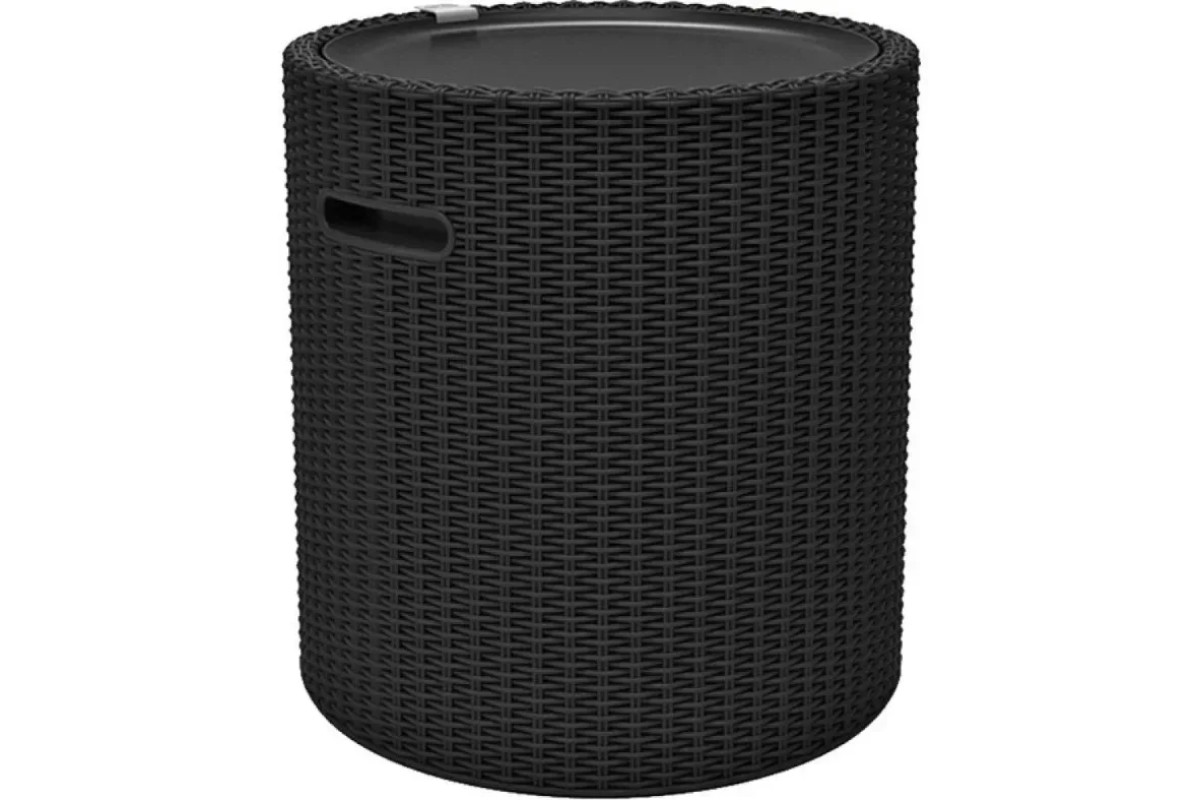 Стіл-бар Keter Cool Stool з холодильником вирізняється функціональністю. Це і столик, і переносний холодильник, а також додаткове синіння. Поклавши на столик подушку, ви отримаєте комфортний пуф, потім як під кришкою охолоджувати напої.