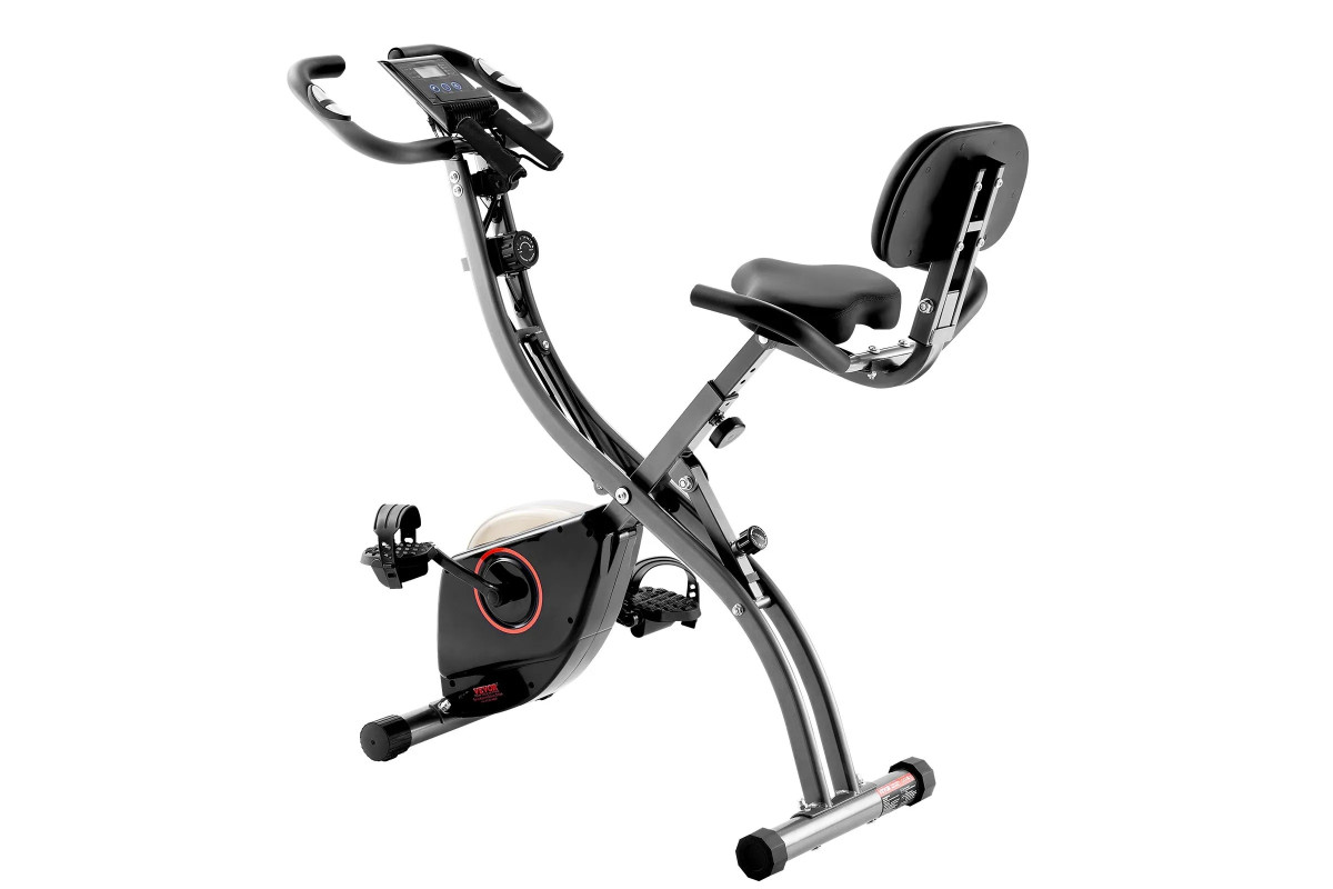 - Складаний тренажерний велосипед має міцну сталеву раму і конструкцію центру ваги у формі літери X, яка витримує значну вантажопідйомність, гарантуючи безпечне, стабільне і комфортне тренування.