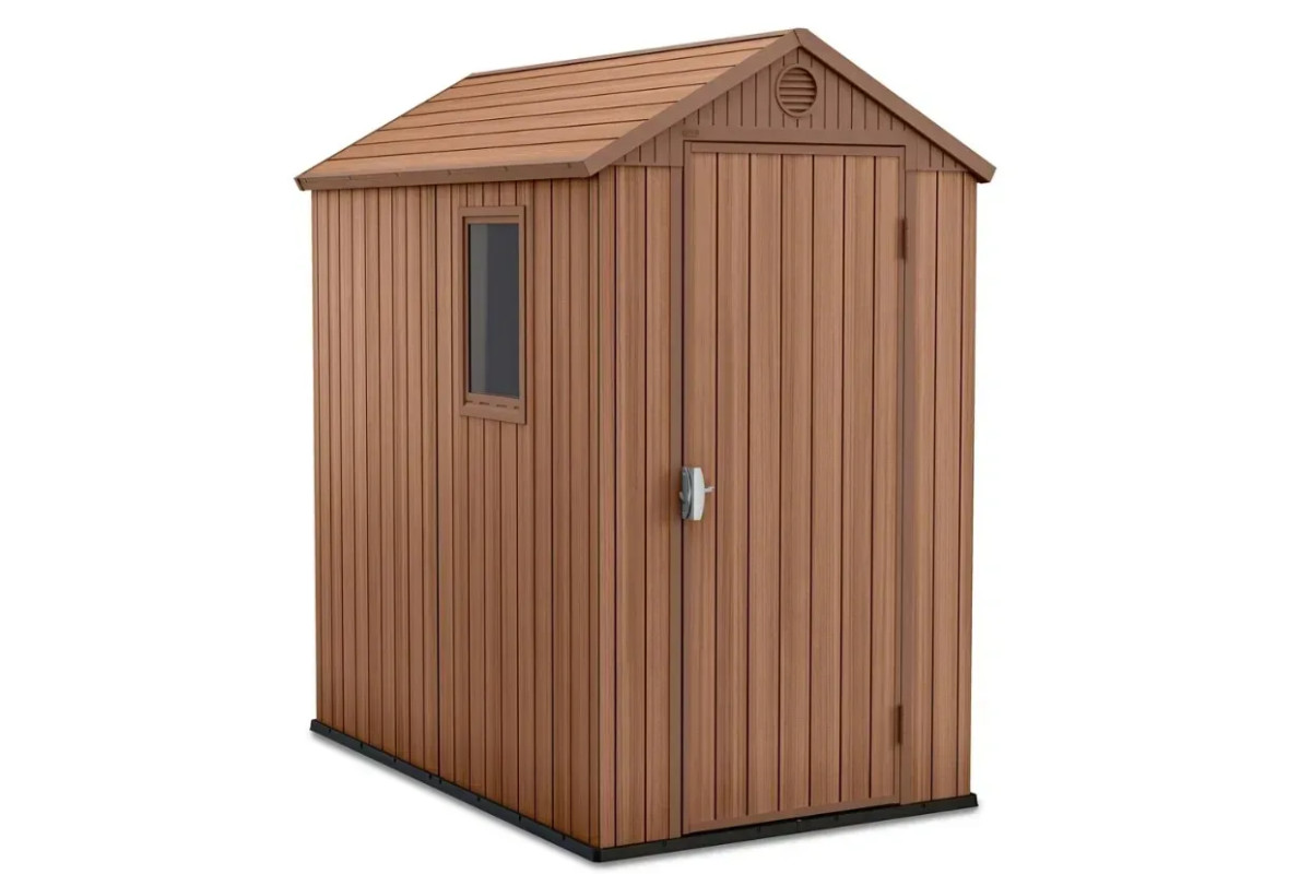Садовий пластиковий будиночок Keter Darwin 4 х 6 (126 х 185 см) — компактний та функціональний господарський будиночок, який поєднує стильний вигляд із практичністю. Завдяки матеріалу Evotech™, що імітує деревину, він не потребує догляду — не іржавіє, не гниє та не лущиться. Конструкція легко збирається за допомогою системи «шип-паз» без спеціальних інструментів, а компактне пакування дозволяє транспортувати його навіть у легковому автомобілі.