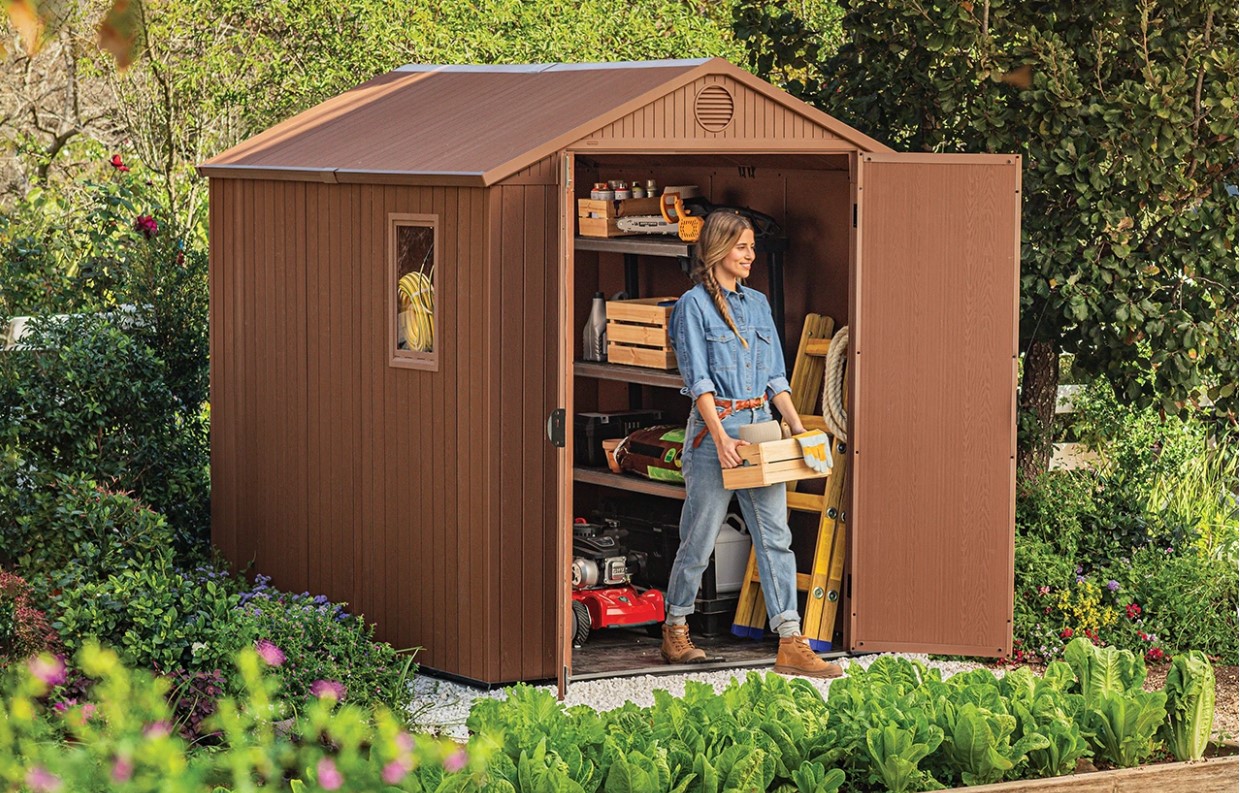 Садовий пластиковий будиночок Keter Darwin 6 х 8 (190 х 244 см) — це просторий та надійний садовий будиночок, який забезпечує зручне зберігання інструментів, інвентарю та садової техніки. Завдяки високій стелі та широким двостулковим дверям він комфортний у використанні, а природне освітлення та вентиляція роблять його практичним навіть як майстерню.