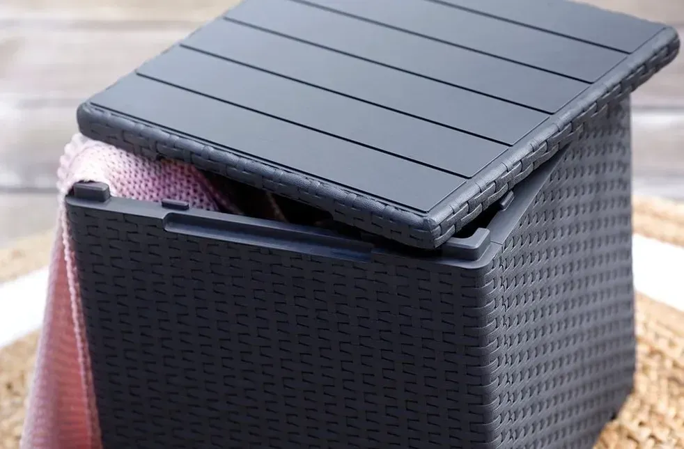 Садовий ящик-стіл Keter Vigo Storage Box — це компактний та універсальний столик із функцією зберігання, який стане практичним доповненням для саду, тераси чи балкону. Усередині можна зберігати потрібне приладдя, а зверху використовувати як столик для напоїв та закусок, підставку для ніг або навіть додаткове сидіння.