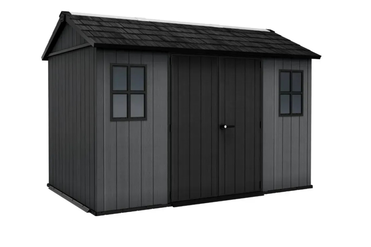 Садовий пластиковий будиночок Keter Newton Plu 230 х 350 см — це сучасний та просторий садовий будиночок із модульною конструкцією, що дозволяє гнучко розташовувати двері та вікна відповідно до потреб. Він поєднує стильний дизайн із високою функціональністю, забезпечуючи комфортне зберігання інструментів, садового інвентарю, меблів чи навіть великої техніки.