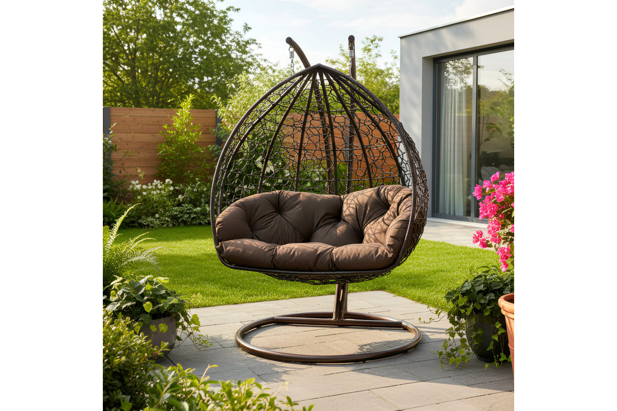 Крісло‑кокон подвійне підвісне GreenGard Венге — просторе, міцне та комфортне місце для відпочинку на свіжому повітрі. Завдяки посиленій стійці, широкому кокону та м’якій подушці воно ідеально підходить для двох осіб, створюючи затишну зону релаксу в саду, на терасі чи в альтанці.